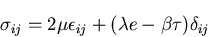 \sigma_{ij} = 2\mu\epsilon_{ij} + (\lambda e - \beta \tau)